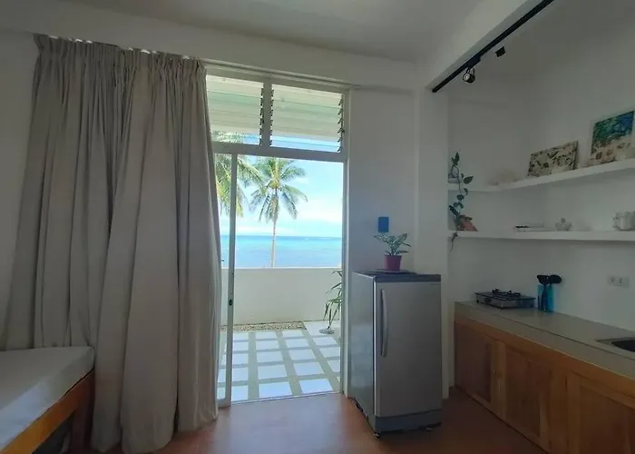 Absolute Beachfront Studio With Kitchen & Balcony Balabag med 1 sovrum har utsikt över havet och ligger mindre än 6 minuter till fots från Calypso Diving. Gästerna kan använda Wi Fi för antingen jobb eller fritid.